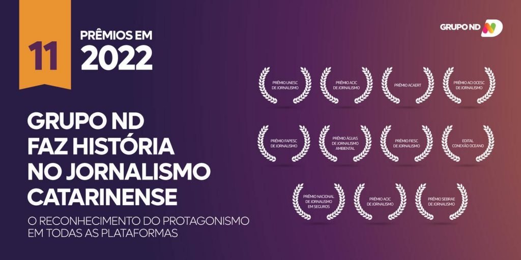 Data: 9/02/2023 Veículo: R7 Prêmios mostram protagonismo do grupo e a contribuição para o jornalismo de qualidade divulgando o Estado e os catarinenses. O Grupo ND encerrou o ano de 2022 com 27 premiações de jornalismo em Santa Catarina e no Brasil, em suas principais plataformas: Jornal ND, Portal ND+ e NDTV. O reconhecimento em […]