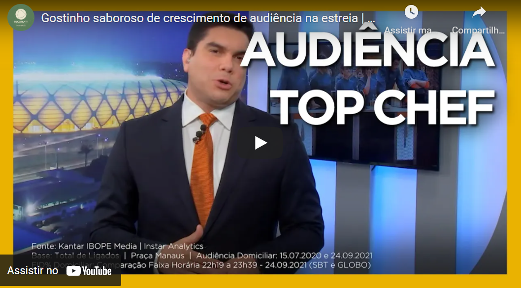 Os dados escolhidos para estrear o novo formato de comunicação são da estreia da 3ª temporada do Top Chef Brasil em Manaus, que obteve 5,6 pontos de audiência e 11,7 de share. Além disso, a praça alcançou o 1º lugar quando analisada a fidelidade (Fid%) do telespectador à programação da Record TV, ficando 15% à frente da 2ª colocada e 27% à frente da 3ª colocada!